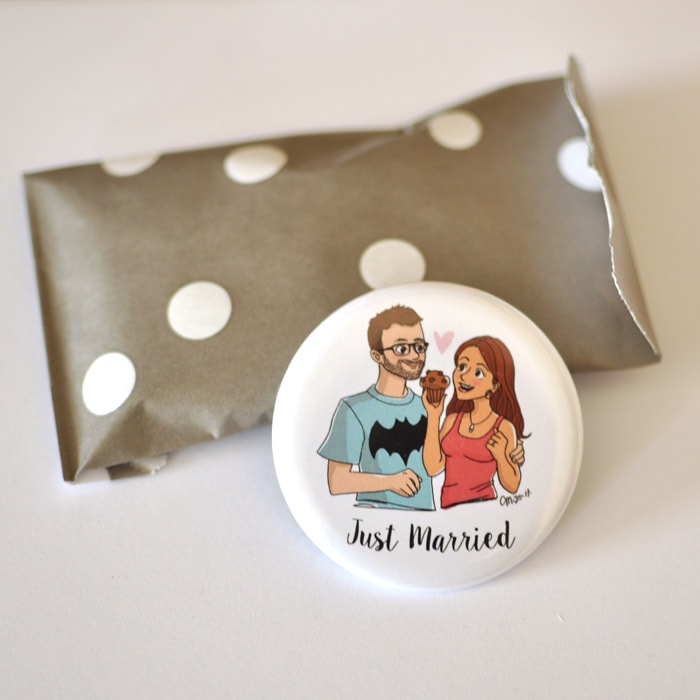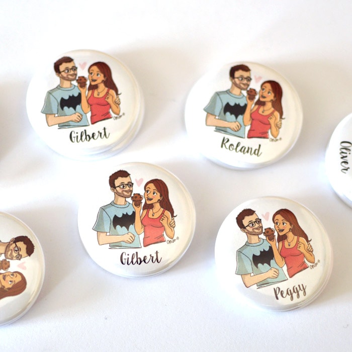 Pour ses magnets plan de table, Alexandre m’a fourni une illustration des futurs mariés, réalisée par la tatoueuse de monsieur. J’ai adoré l’idée très originale, qui me permettait au passage de les visualiser ! 😉
