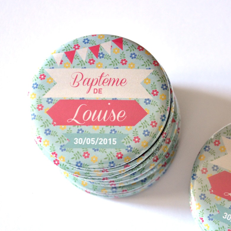 Magnets fleurs de toutes les couleurs réalisés selon les couleurs des robes de la maman et de la petite Louise ! Oui oui, tout est possible !