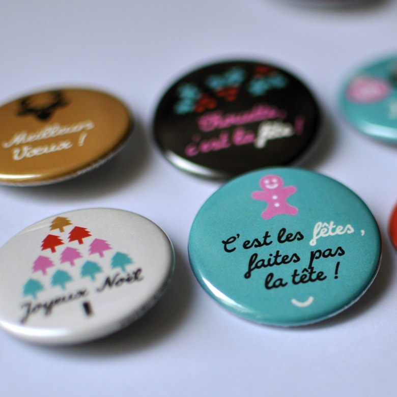 Objets personnalisés, badges, magnets, décapsuleurs, miroirs, porte-clés... pour les évènements joyeux !
