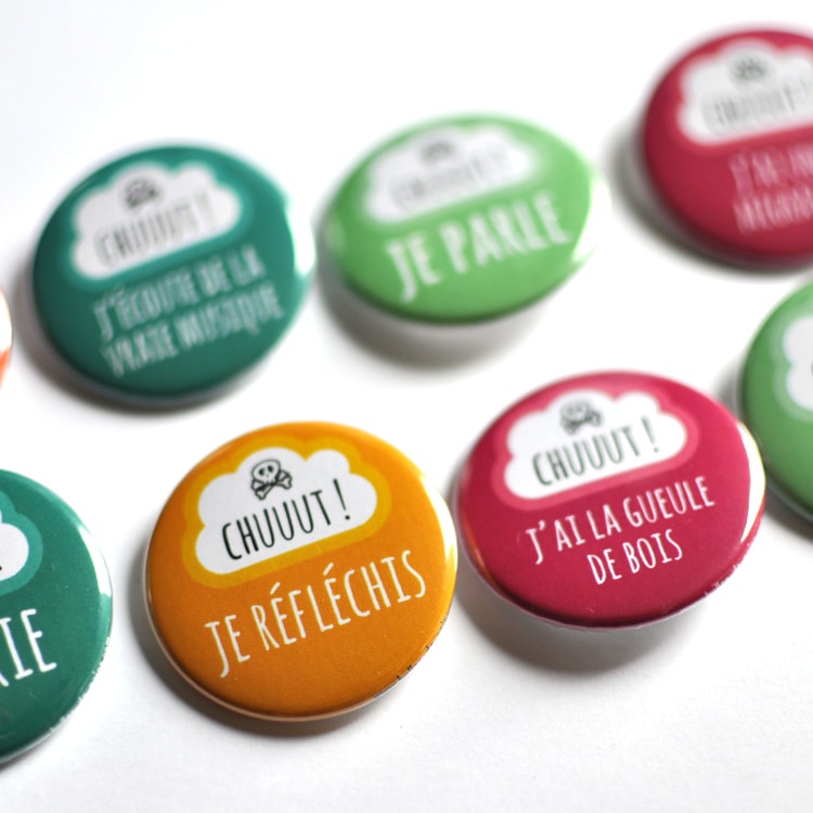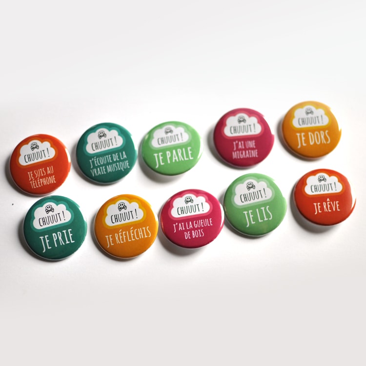 Objets personnalisés, badges, magnets, décapsuleurs, miroirs, porte-clés... pour les évènements joyeux !