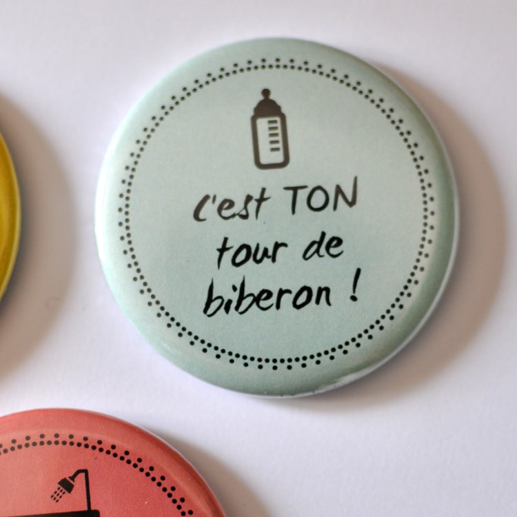 Badge épingle ou magnet frigo 38 mm Féminin ou ma…