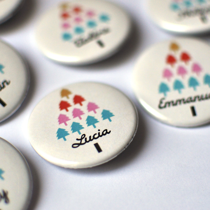 1 Badge épingle ou magnet frigo Diamètre 38 mmCes badges ou aimants sont un petit cadeau souvenir personnalisé pour chacun de vos invités, pour une jolie table ou un cadeau mignon (à épingler sur le furoshiki !). Chaque objet porte un prénom personnalisé, idéal pour finaliser le plan de table (et éviter les conflits ! ;-) )6 visuels au choix (faire défiler les images) : Père Noël, Chaussette, Boule, Sapin, Etoile, Voiture ou mix de tous les visuels, si vous voulez un peu de tout.Joyeux Noël bien sûr !